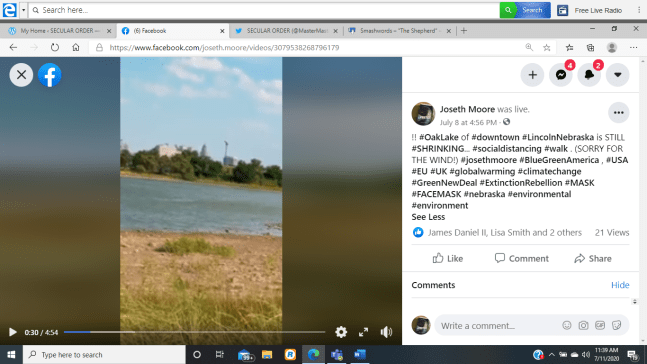 #OakLake of #downtown #LincolnNebraska is STILL #SHRINKING… #socialdistancing #walk . (SORRY FOR THE WIND!) #josethmoore #BlueGreenAmerica , #USA #EU #UK #globalwarming #climatechange #GreenNewDeal #ExtinctionRebellion #MASK #FACEMASK #nebraska #environmental #environment