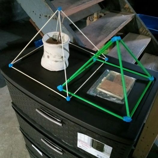 Actual pyramids put together by Joseth Moore, & used in his experiment in Para-Events Blog number 36, based on YouTuber Stephen Woodward’s video–his reference to Dan A. Davidson’s treaties, “What You Need to Know About Shape Power.” Sept. 11, 2021. (Pictured with the pyramids are Joseth’s other paranormal “artifacts” from his other investigations.)