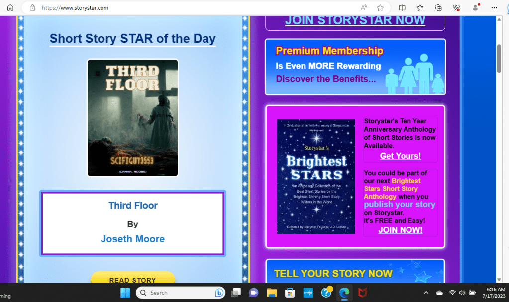 ~Screenshot with “Third Floor” featured on Story Star; Monday, July 17, 2023 (Joseth Moore)~