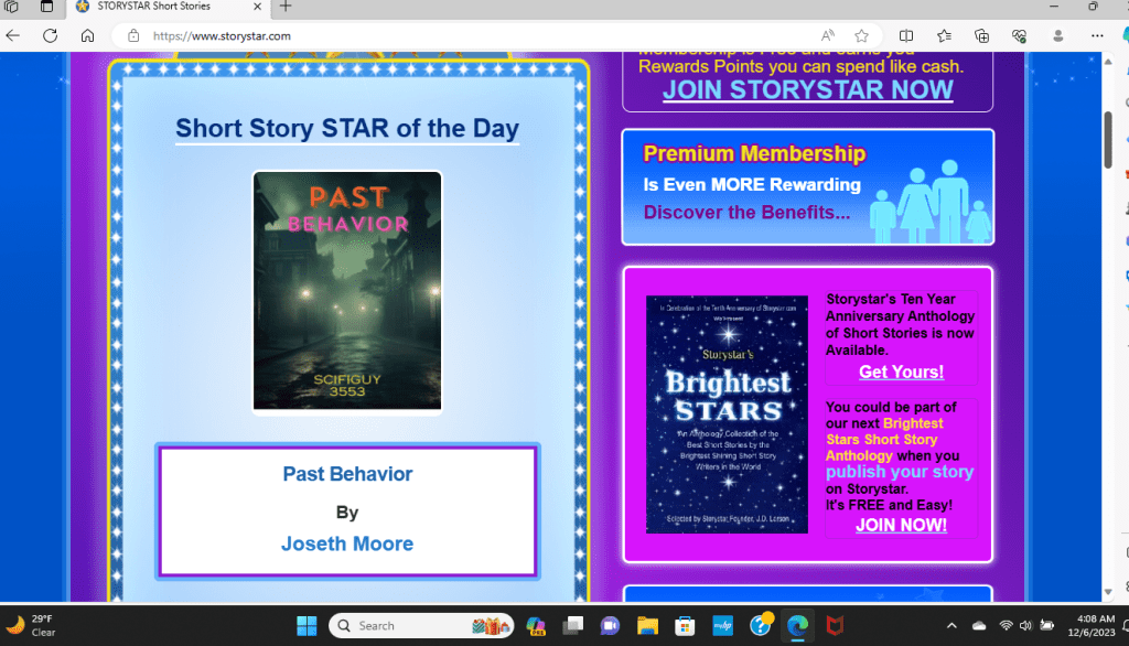 ~ Story Star platform featuring SciFi author Joseth Moore’s “Past Behavior” ~