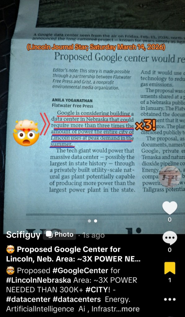 🤯 Proposed #GoogleCenter for #LincolnNebraska Area: ~3X POWER NEEDED THAN 300K+ #CITY!